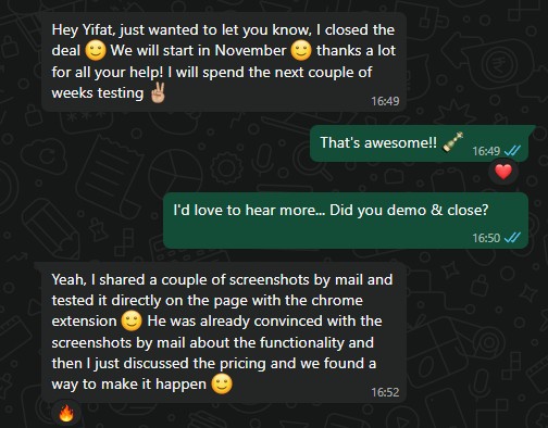 You get a proven client-getting strategy, pricing breakdowns, niche-specific playbooks, and the exact demo flow Yifat Cohen used to close a $5k setup + $3.5k/month retainer… in under an hour.